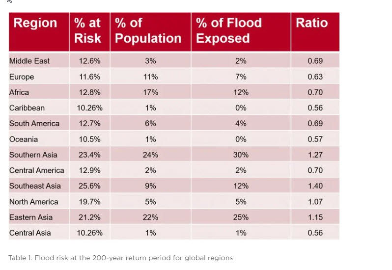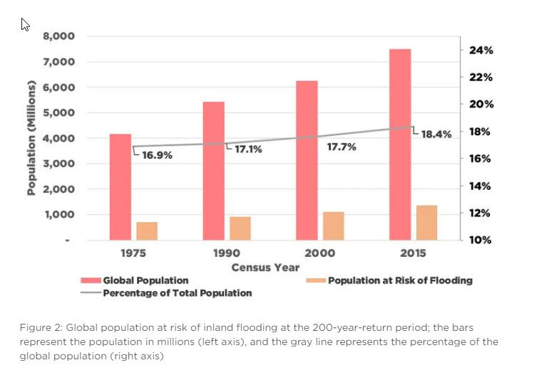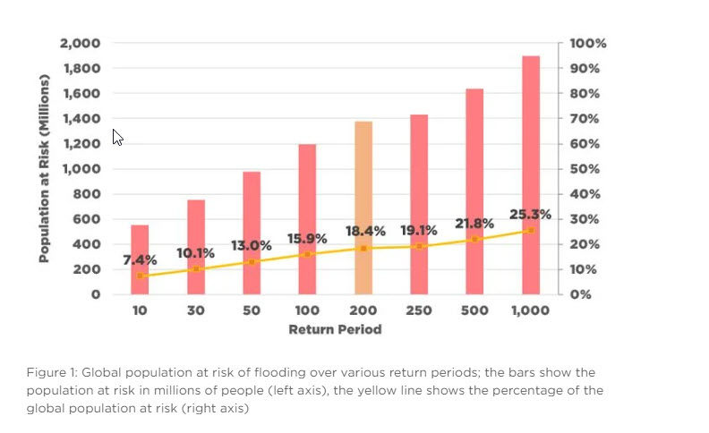 1) 1.375 billion people are at risk of flooding at the 200-year return period