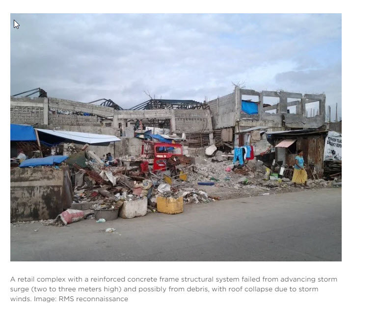 A team of RMS vulnerability developers visited a few weeks after the event to undertake damage reconnaissance, including the island of Leyte, visiting cities such as Tacloban City, and Ormoc City that saw damage to 90 percent of structures.